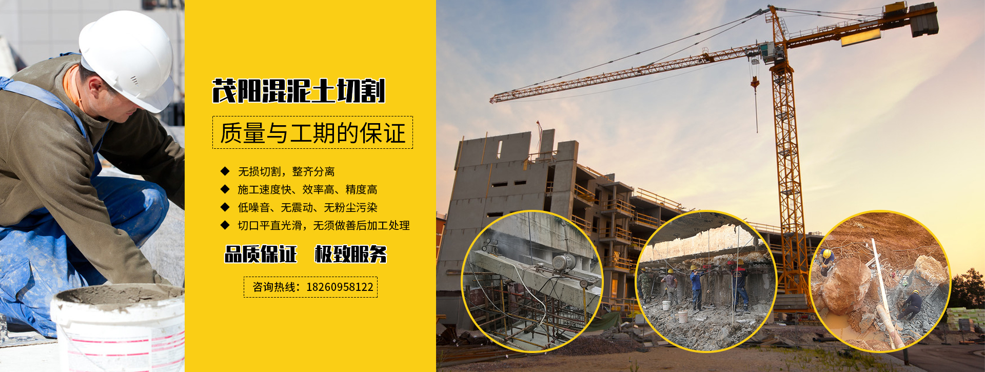 • 廣西茂陽工程有限公司,是一家鋼筋混泥土切割,水下切割、加固、植筋、鉆孔、補強、切割加固、房屋切割加固/破碎拆除、橋梁切割加固/破碎拆除、建筑切割加固/破碎拆除等特種工程的施工隊伍